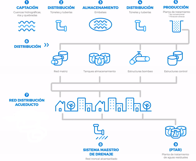 El proceso inicia desde la captación de las fuentes de agua y luego…